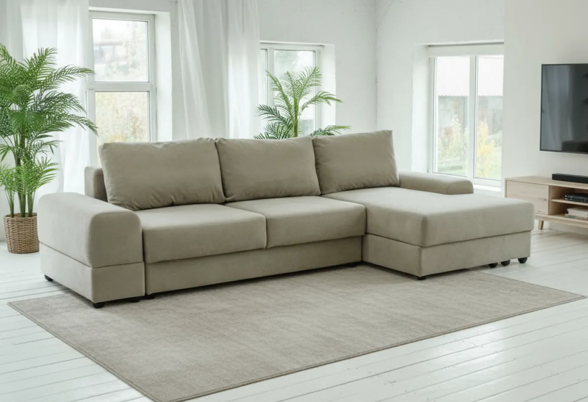 Диван Андрэа — это модульная система, которую вы собираете под себя. Хотите компактный прямой диван? Пожалуйста. Нужна большая угловая конструкция с местом для хранения? Тоже без проблем. Внешне — строгий минимализм. Никаких завитушек и лишнего декора, только прямые линии и простая геометрия. Благодаря этому он одинаково хорошо смотрится в современной гостиной, квартире-студии или даже спальне. Добавьте сюда детали из скандинавского стиля и лофта — получится мебель, которая не будет спорить с интерьером, а станет его аккуратной частью. Внутри — добротный каркас из ДСП и фанеры, пружинный блок «змейка» и многослойный поролон (жесткий, плотный, сверху — лотекс и холкон). То есть диван рассчитан на ежедневную нагрузку. Производитель заявляет до 110 кг на одно посадочное место и 140 кг на спальное. В общем, сделано на совесть. Соединяются модули между собой обычными болтами — ничего не будет разъезжаться.